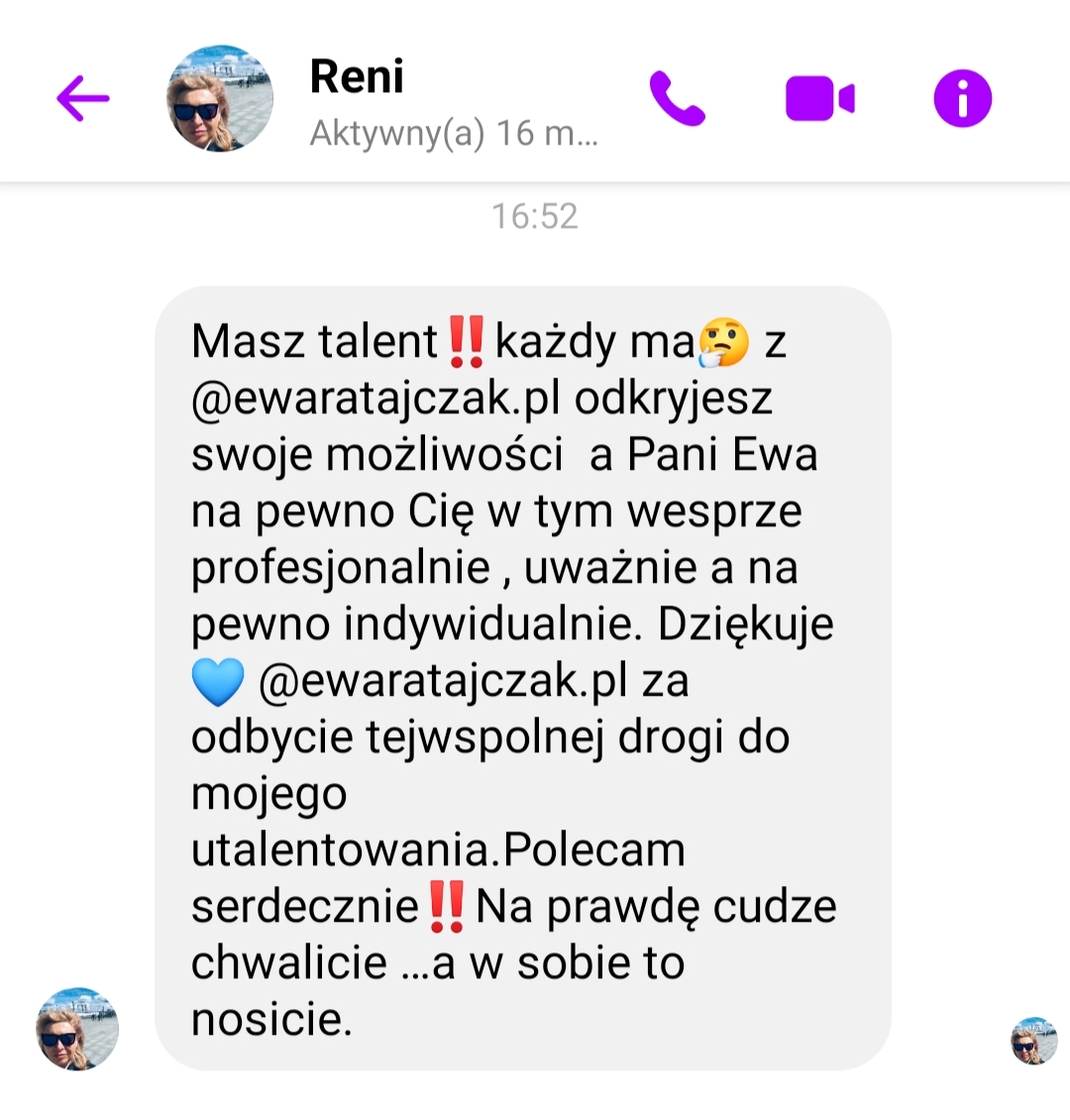 Działam z entuzjazmem i pozytywnym nastawieniem, co przyciąga dobre rzeczy i motywuje do dalszej pracy z pasją i radością.